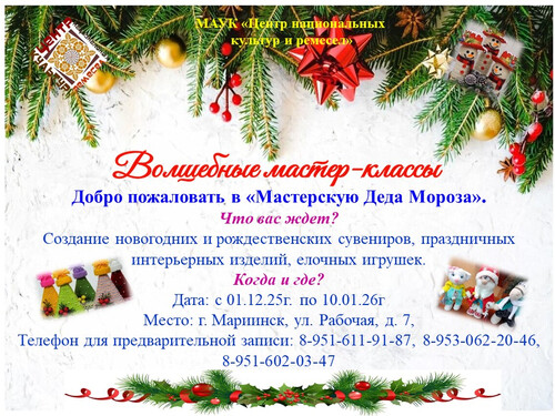 "Мастерская Деда Мороза" - региональный творческий проект в рамках реализации всекузбасского проекта «Кузбасс новогодний. Большие сибирские каникулы».