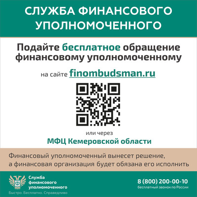 Если спор с финансовой организацией не урегулирован – подайте обращение финансовому уполномоченному на его официальном сайте или через МФЦ Кемеровской области.
