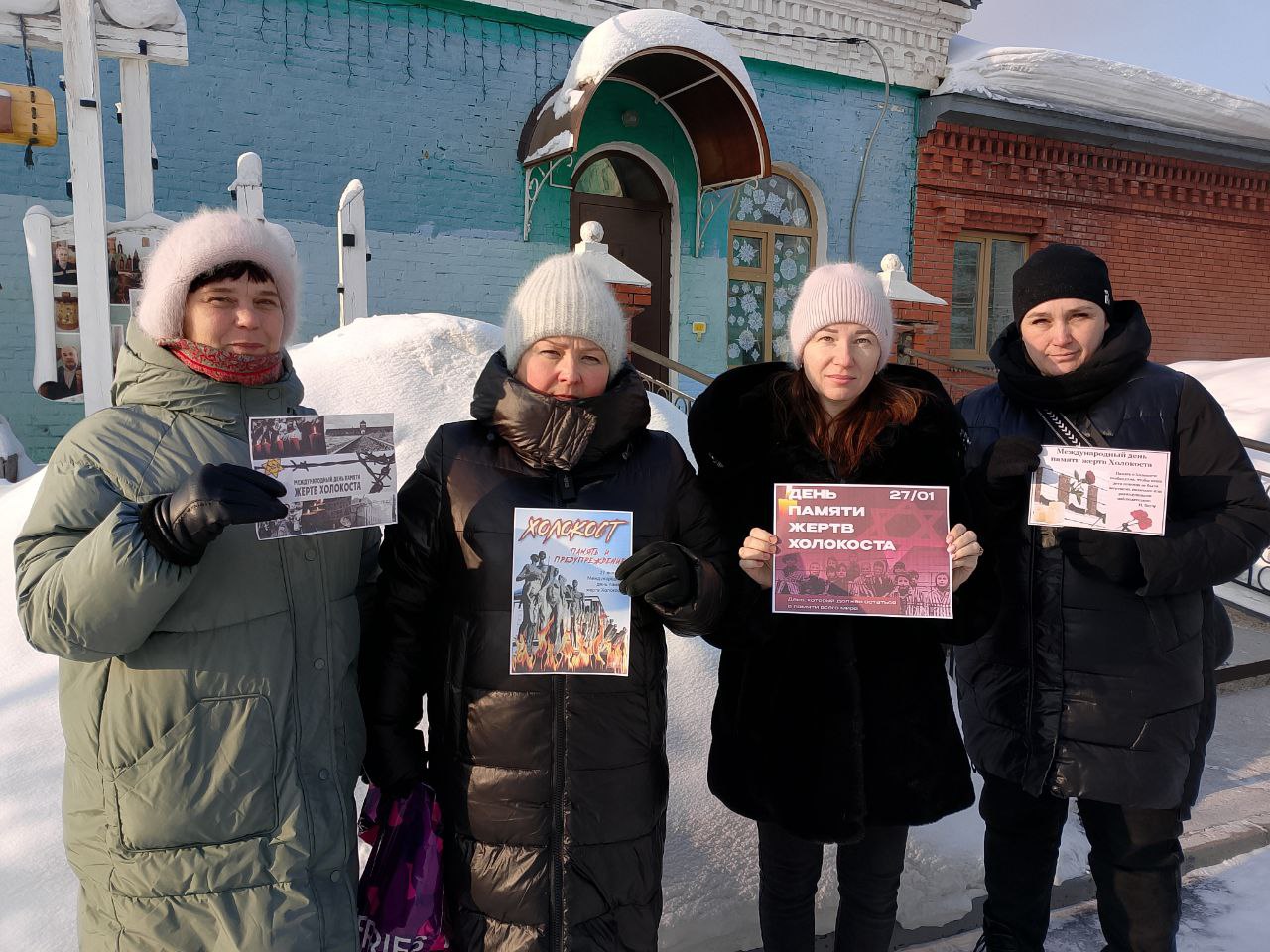 Работники Центра национальных культур и ремесел вышли на улицы города с простой, но важной акцией. На оживленных улицах мы рассказывали о детях погибших в Холокосте. В диалоге с людьми мы доносили одну простую мысль: «Это было не где-то далеко. Это были такие же дети, как наши. Им тоже хотелось играть, учиться, любить. Их забрали только потому, кем они родились».