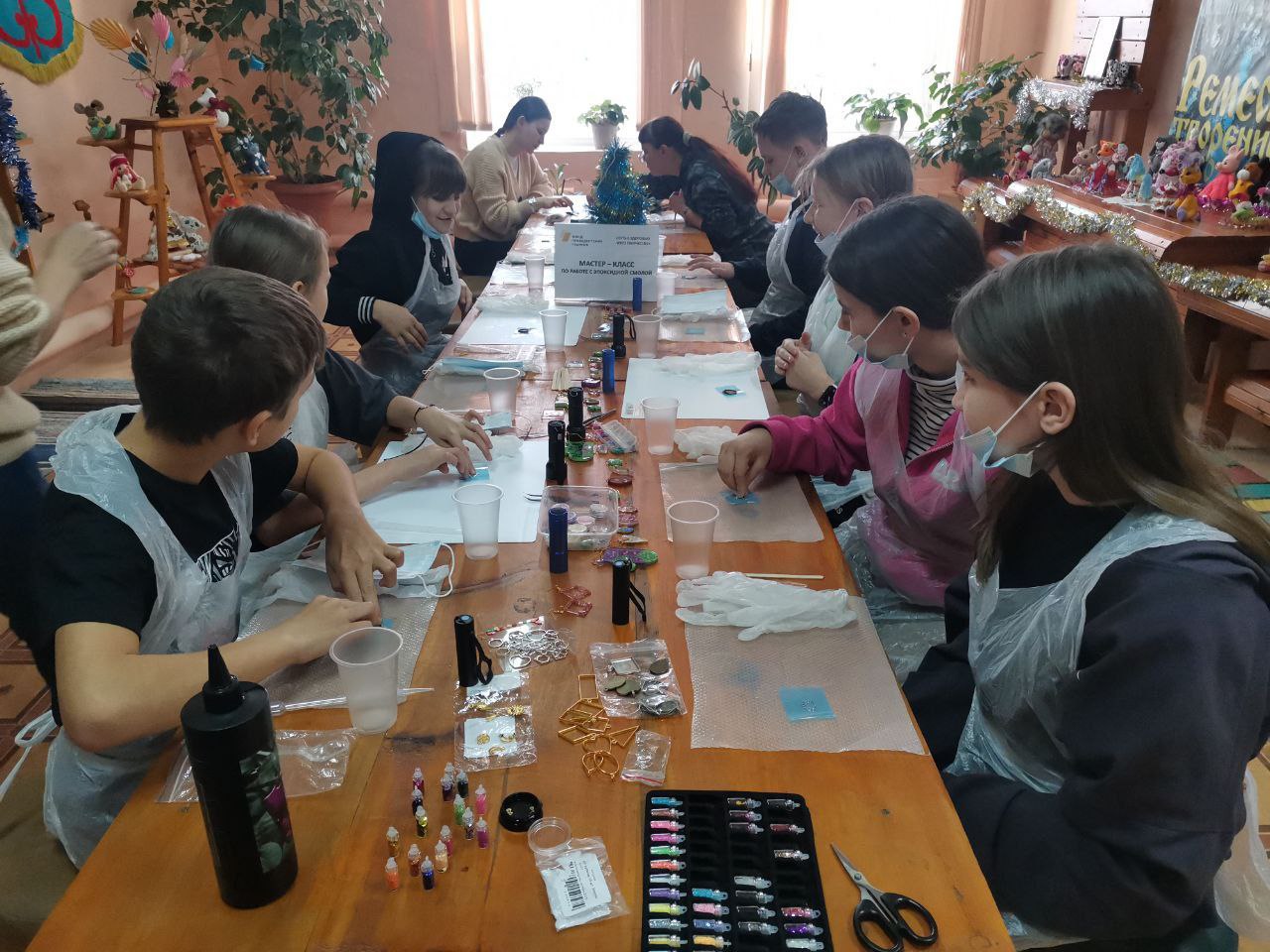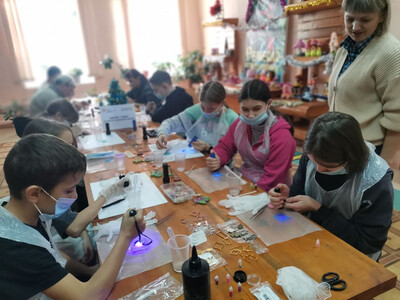 Совместный мастер класс провели мастер Центра Галина Пукова и мастер Сусловского СДК Наталья Боротова. Под их руководством ребята создавали интересные кулоны из эпоксидной смолы. Удивление, когда смешиваются компоненты. Ожидание, когда заливается своя идея в форму. И вот он — восторг от готового результата!