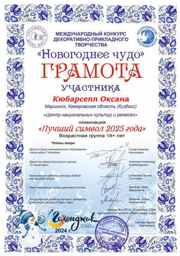 Особое удовольствие автору во время работы приносит создание уникальных вещей, отражающих внутренний мир и настроение. Оксана Валерьевна активно участвует в выставках, ярмарках, конкурсах различных уровней и имеет множество наград.